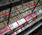 基礎立ち上がり補助筋(縦筋:赤矢印)
