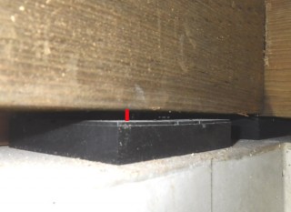 写真は手前側が浮き、奥の角は基礎パッキンについている。